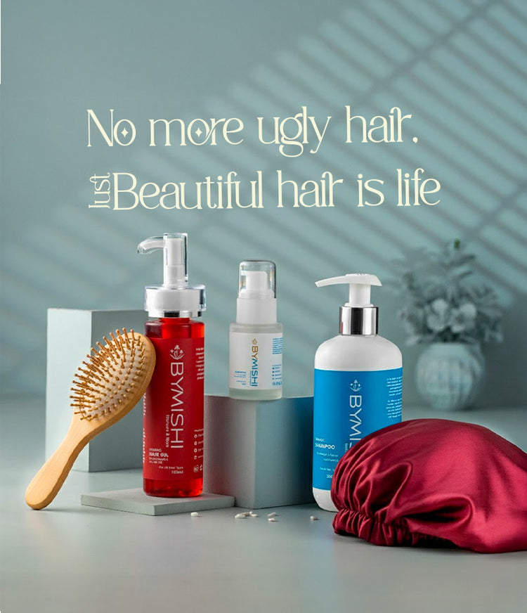 We believe true beauty begins in the roots — where strength, self-care, and confidence grow together. Every bottle we create is more than a blend of oils and botanicals — it’s a reflection of resilience, revival, and self-love. At ByMishi, science meets nature to bring you clean, effective hair care that nurtures your scalp, revives your strands, and restores your shine — both inside and out. Each drop of oil, every wash of shampoo, every touch of serum is a ritual — a promise that your hair can heal, thrive, and tell its story again. We don’t just treat hair. We transform fatigue into radiance, breakage into growth, and routine into ritual. Our formulas are powered by the purity of plants, perfected by innovation, and wrapped in care for every woman who dares to rise, reclaim, and glow again. This is more than a brand. It’s a journey — of growth, grace, and the belief that you are your most beautiful when you feel whole. Welcome to ByMishi. Where hair heals, confidence blooms, and beauty begins within.